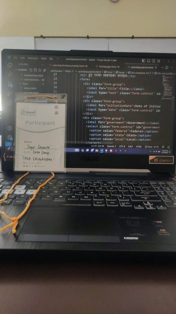 Yugal continued to push his limits. As a +2 level student, he participated in the “KU IT MEET 12 Hours Coding Competition” organized by KU University. This experience wasn’t just about competing; it was about challenging himself, learning under pressure, and discovering new aspects of his potential.